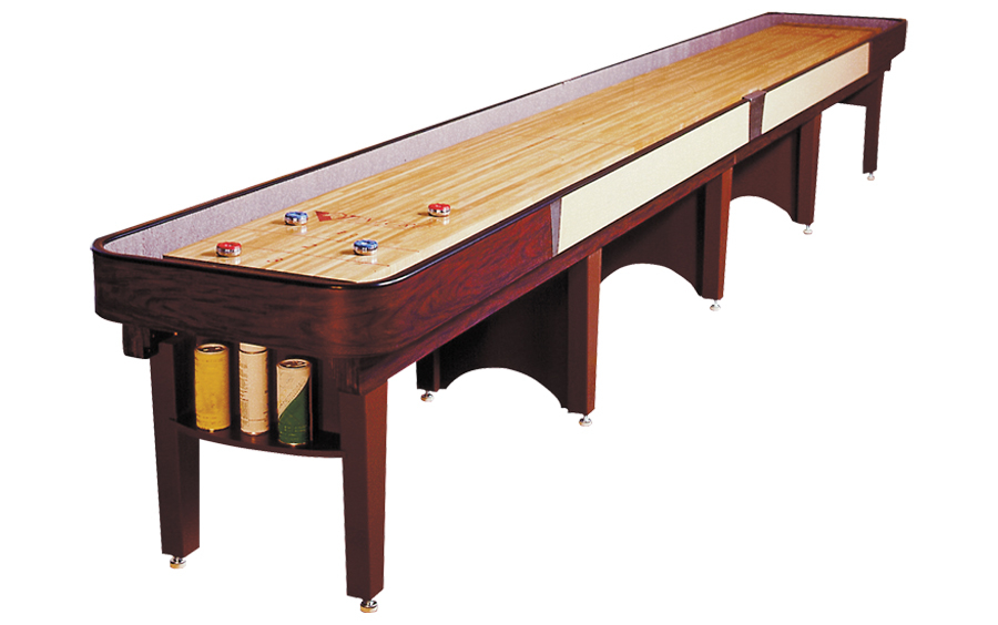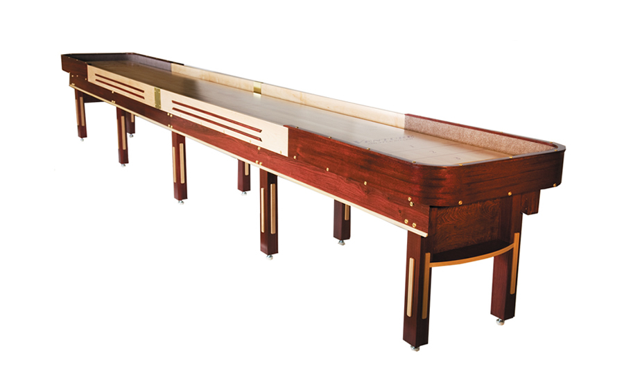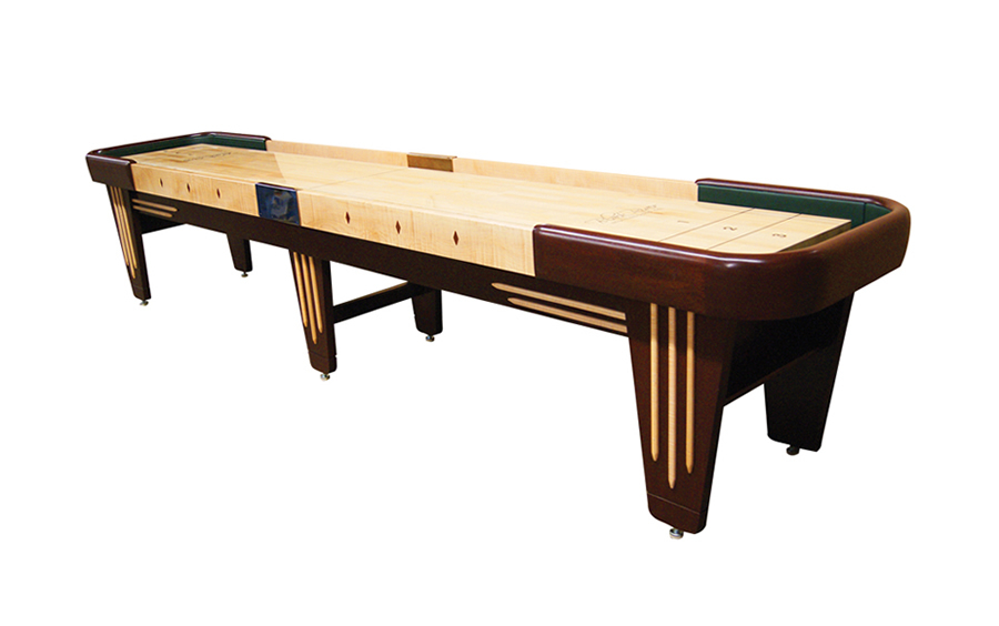 The Grand Deluxe is one of the oldest shuffleboard tables around, dating back to the 1930's. Still built with the same attention to detail that you find in most antique shuffleboard tables, the Grand Deluxe will stand out in any home game room. The cabinet is constructed of poplar and maple with mahogany bowed ends. The brass screws and solid brass connecting plates complete the finishing details of this beautiful shuffleboard.
