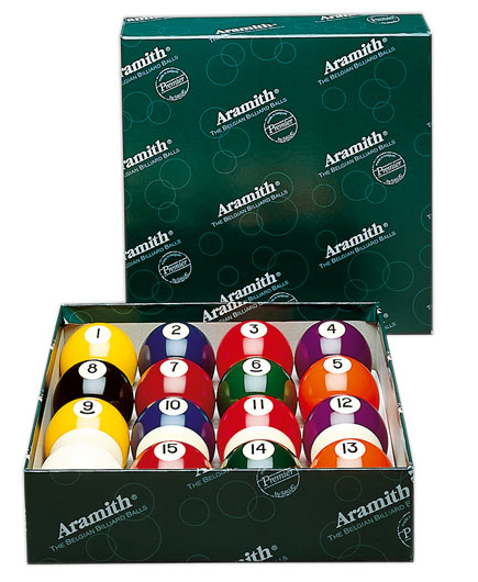 With its classic “numbers in the stripe” look and tight cosmetic criteria, it is the perfect compromise between quality and price. Belgian Aramith Premier phenolic resin 2 1/4" diameter balls are the ultimate in billiard balls.