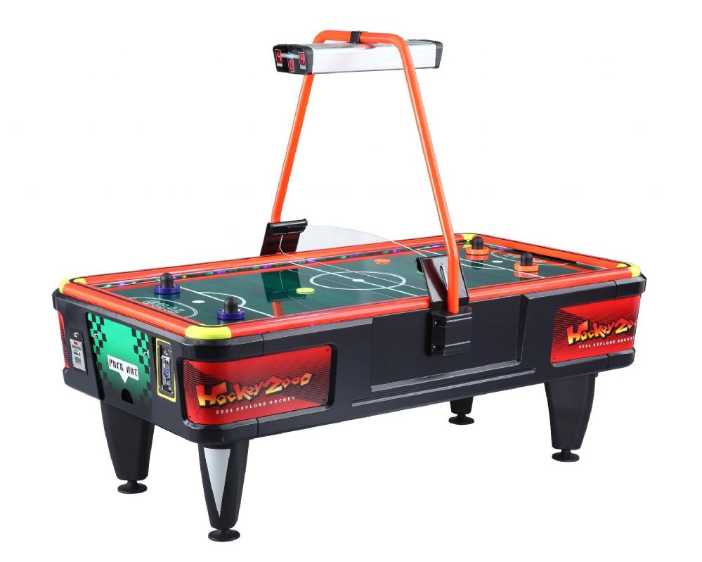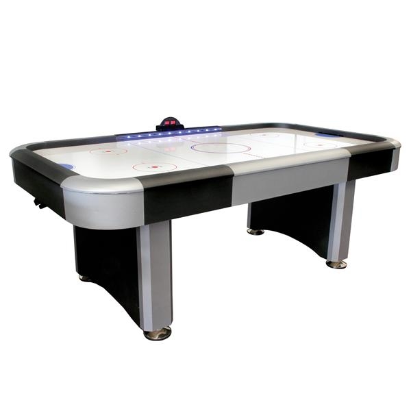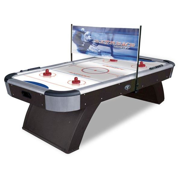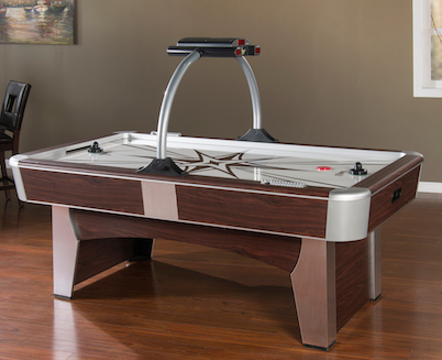 MONARCH AIR HOCKEY TABLE The Monarch “AeroMaxx Series” Air-Powered Hockey Table’s design is as sleek and smooth as the puck that will glide over it. This table features a unique overhead arch with a two-player electronic scorer. The cherry-finished cabinet has silver caps and trim, supplementary manual scorers on each side of the deep playing surface, and a screenprinted starburst design.