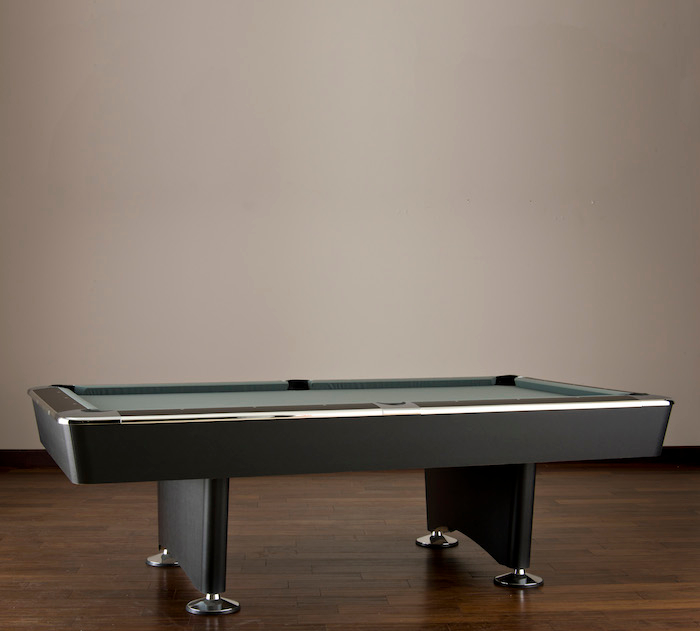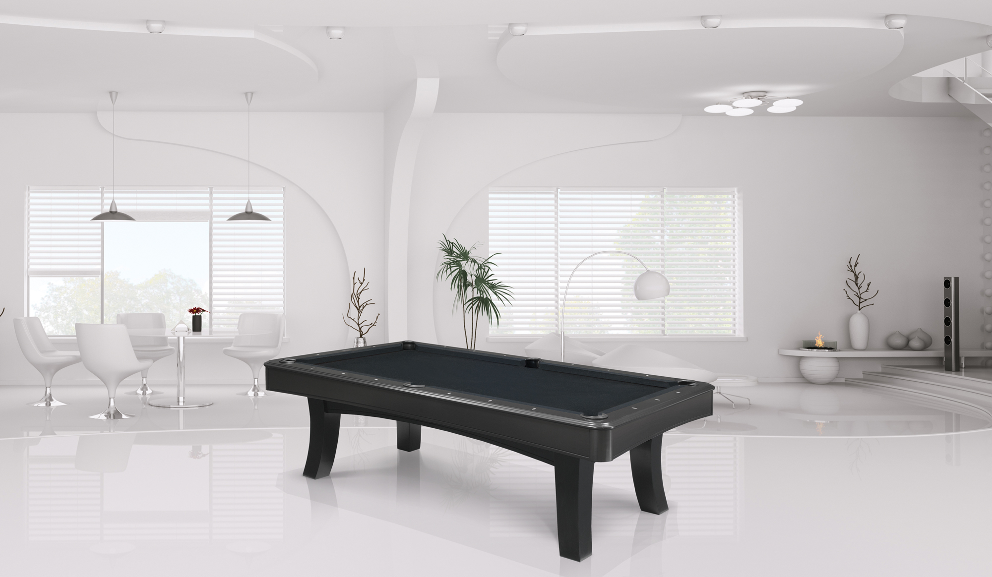 Ella II pool table is styled with curved post legs, an arched cabinet and arched side blinds, all showcasing a smooth polished finish on solid hardwood. Ella II billiard table is modern yet elegant for a contemporary look. Ella II encompasses the pocket with a solid wood rail with white embedded diamond pearl sites. This beautiful pool table is for the billiard room that is looking for a modern panache. Ella II is available in 8 ft and 9 ft lengths. And to keep your game room as sleek as the Ella II, we recommend purchasing the Perfect Drawer for perfect hidden storage for all your billiard room accessories.