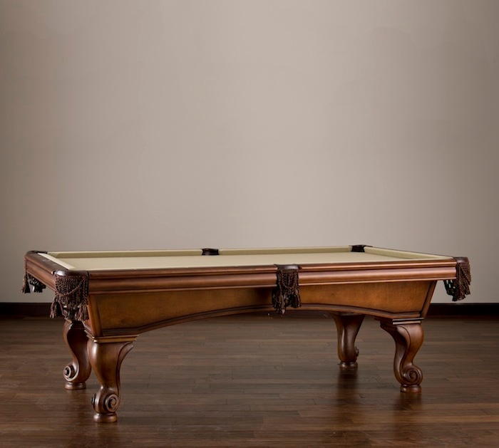 Legacy Landon II Pool Table Legacy Billiards redefines pool table style with the 2013 Landon II pool table. Built of solid wood with a fine furniture finish, the Landon II is inspired by the craftsman era of fine wood working. The Landon II is infused with special details ranging from the 6 inch closed rail with embedded real mother of pearl sites to the custom routered details of the side panels. Landon II boasts a 1 inch think slate base and a lifetime warranty. Seasoned players will know this table is made for professional play.