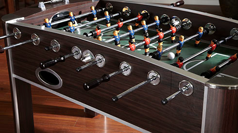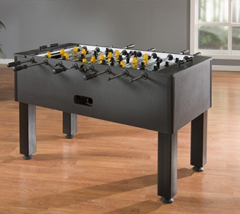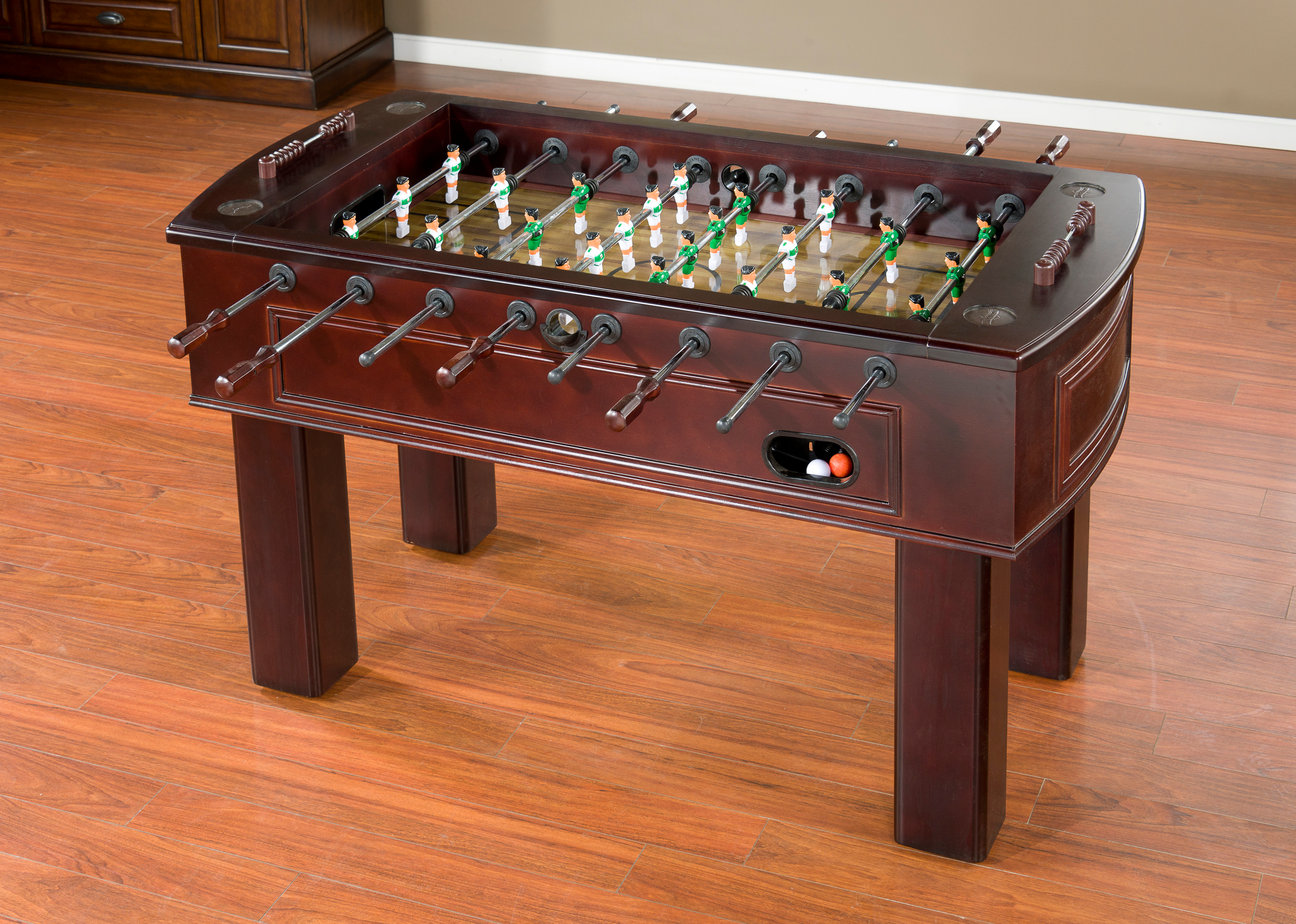 Get your game on with our Classic Foosball Table. This fashionably designed game table complements any decor. The table is set in a beautiful Espresso cabinet accented with detailed trimming and professional hardwood handles. Parquet playing field Easy-glide ball bearings Striped rugby competitors Includes soccer balls Stainless steel rods Players are counter balanced Adjustable leg levelers 3/4" thick sidewalls Some assembly required; view instructions