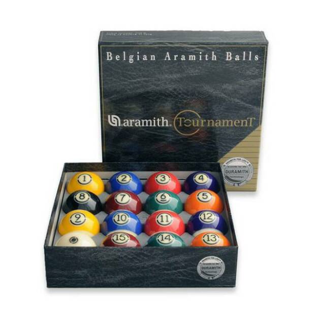 The Aramith Tournament Pool Ball set is the new generation of billiard balls featuring the Duramith technology. The Duramith resin formulation with it's hi-tech engineered molecular structure, drastically enhances the longevity of the Aramith ball sets while significantly minimizing table cloth wear
