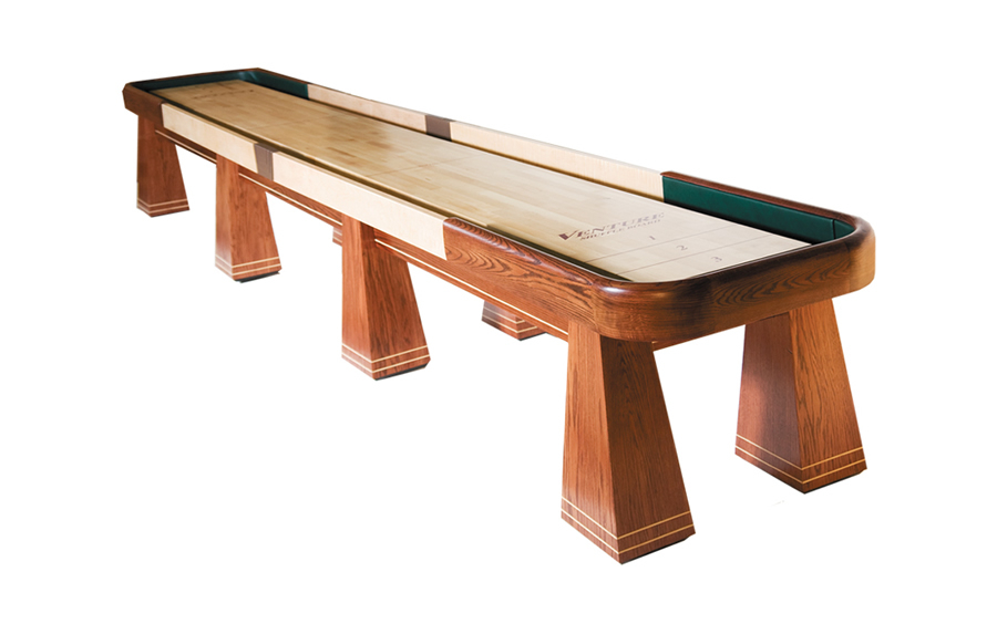 The Classic: This very popular model is found in bars across America. Its rugged construction and vintage styling is perfect for any home game room, billiard hall, or local bar. You can expect to enjoy a lifetime of fun and competitive play with the Classic shuffleboard table. As with all Venture Shuffleboard tables the Classic is 100% made in America. This model is also available in a coin-op version, please contact us for details.