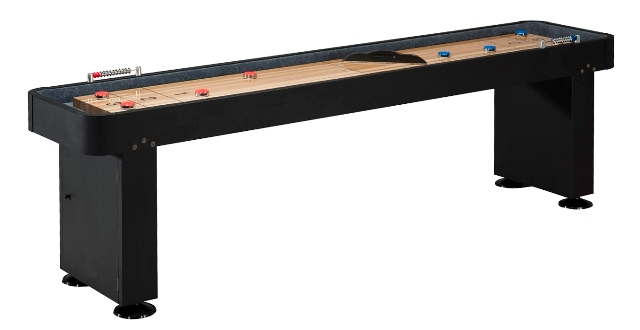 Enhance your game room experience with the excitement of a time-honored tradition: shuffleboard. Experience the challenging and addictive play of the classic game with the Heritage Shuffleboard. With built in adjustable storage shelves inside the legs, it's easy to store your accessories safely and securely. With a sleek, modern design, the Heritage Shuffleboard is an excellent to addition to any game room.